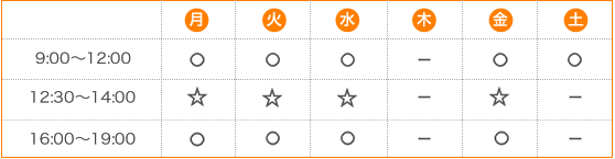 ※土曜日午後はお休みです。 ☆は往診のみ