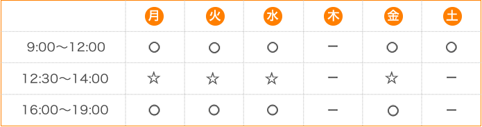 ※土曜日午後はお休みです。 ☆は往診のみ
